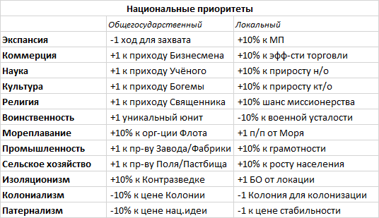 Национальный приоритет – выбранная Игроком специализация своего народа.