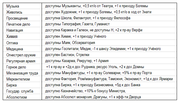 Эффекты от изучения тех или иных технологий становятся доступными уже в ход их изучения.
