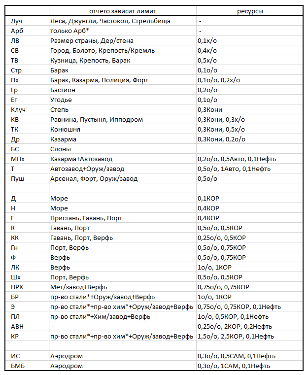 Найм/постройка всех боевых юнитов ограничены в игре 2 параметрами: наличием МП/лимита флота и лимитом найма/постройки. Природные факторы, постройки, технологии и др.факторы могут влиять на лимит найма/постройки – на то количество юнитов определенного типа, которые может иметь страна.